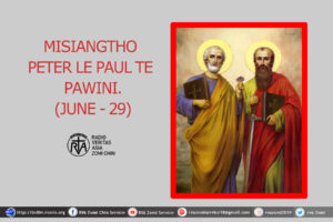 Hun Nautang Nipi Kaal (12) Na.Saturday (28.6.2025)Fr.Joseph MungJune 28, 2025Nisim Kha-an Tuni Lungdamna Laisiangtho (Lk 2;41-51) na bulphuhin Rev. Fr. Joseph Zo Mung tungpan Kha-an vakna. Tags# #Homily# #KalayDiocese# #RVA# #RVAZomiChinService Fr.Joseph Mung Articles: 1675 Previous Post Misiangtho Irenaeus Pawini. (June – 28) Next Post Misiangtho Peter le Paul te Pawini. (June – 29)