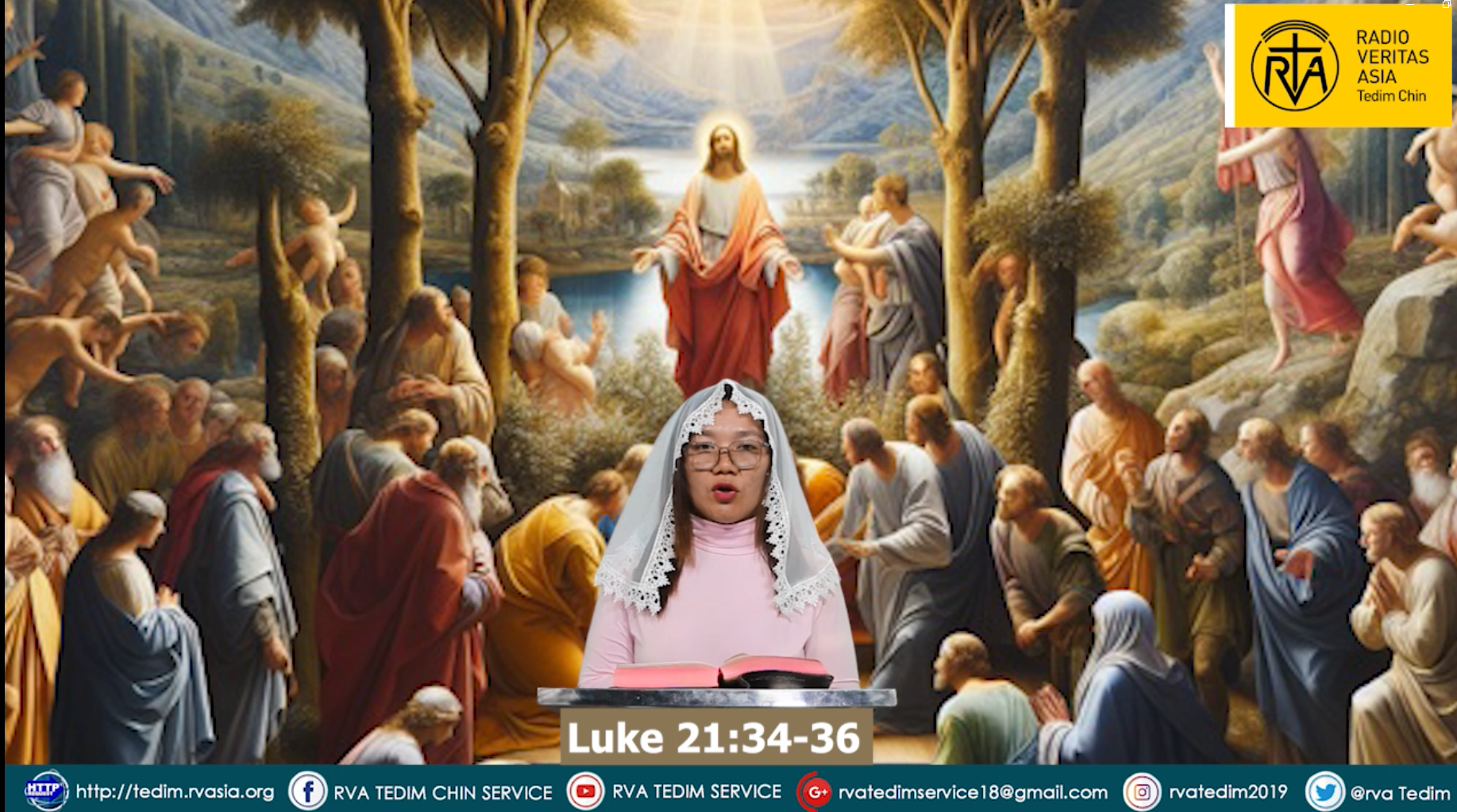 Catholic Nisim Lungdamna Lai Siangtho (29.11.2028) SaturdayFr.Joseph MungNovember 29, 2025Nisim Kha-an Lungdamna Laisiangtho Luke 21:34-36 Tags# #DailyBibleReading# #KalayDiocese# #RVA# #RVATedimChinService# #RVAZomiChinService Fr.Joseph Mung Articles: 1675 Previous Post Hun Nautang sungah Nipi (34) na 29.11.2025 (Saturday ) Next Post Confirmation at St.Theresa Church, Tahan-Kalaymyo (29.11.2025)