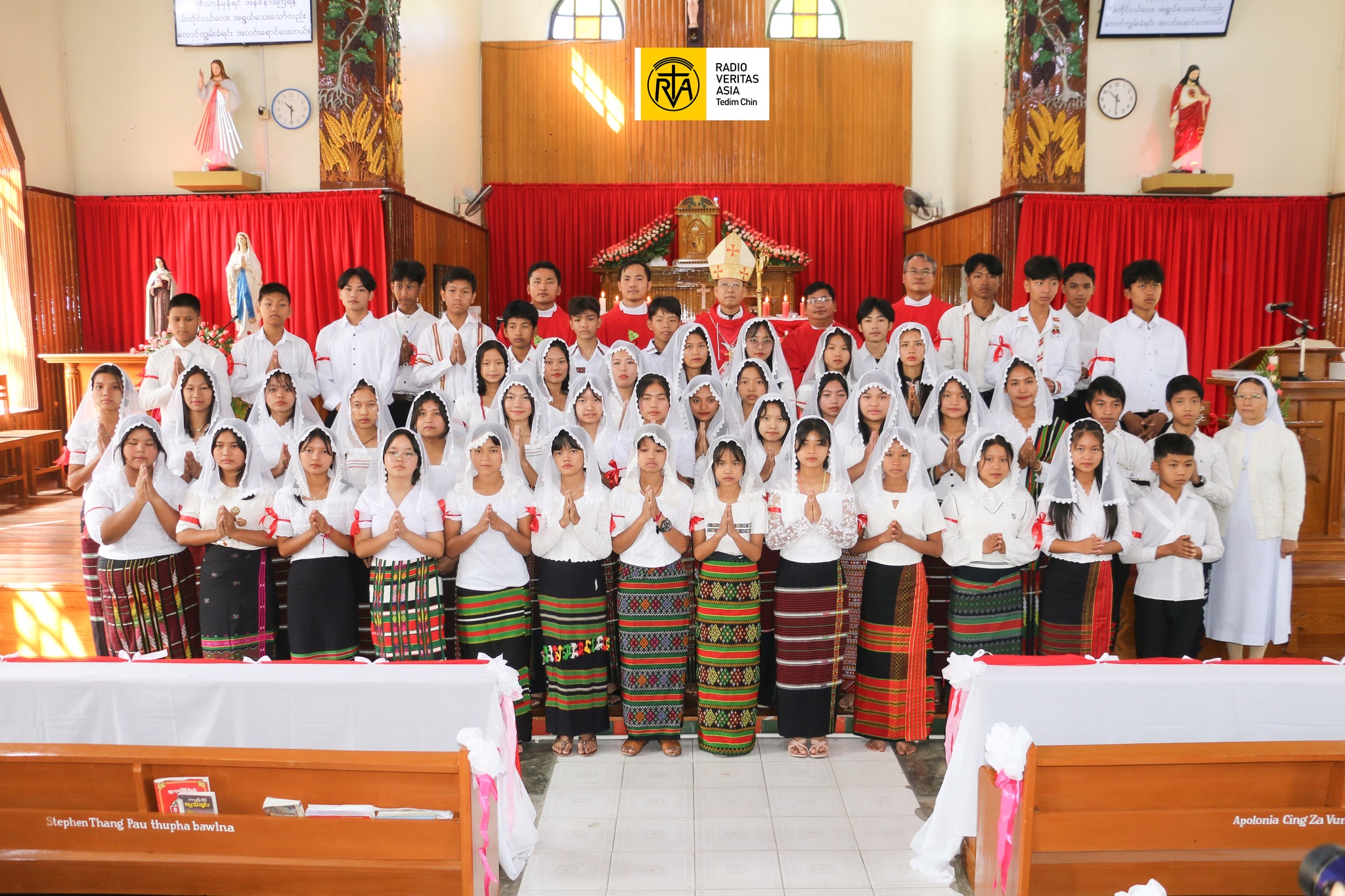 Tuni Tahan St. Theresa Parish Priest Rev. Fr. Joseph Kap Tung Nung vaihawm siamna tawh Kalay Diocese acing akem Bishop Felix Lian Khen Thang in Naupangte mi (50) Christma Hanthotna (Confirmation) piakna nei hi.
