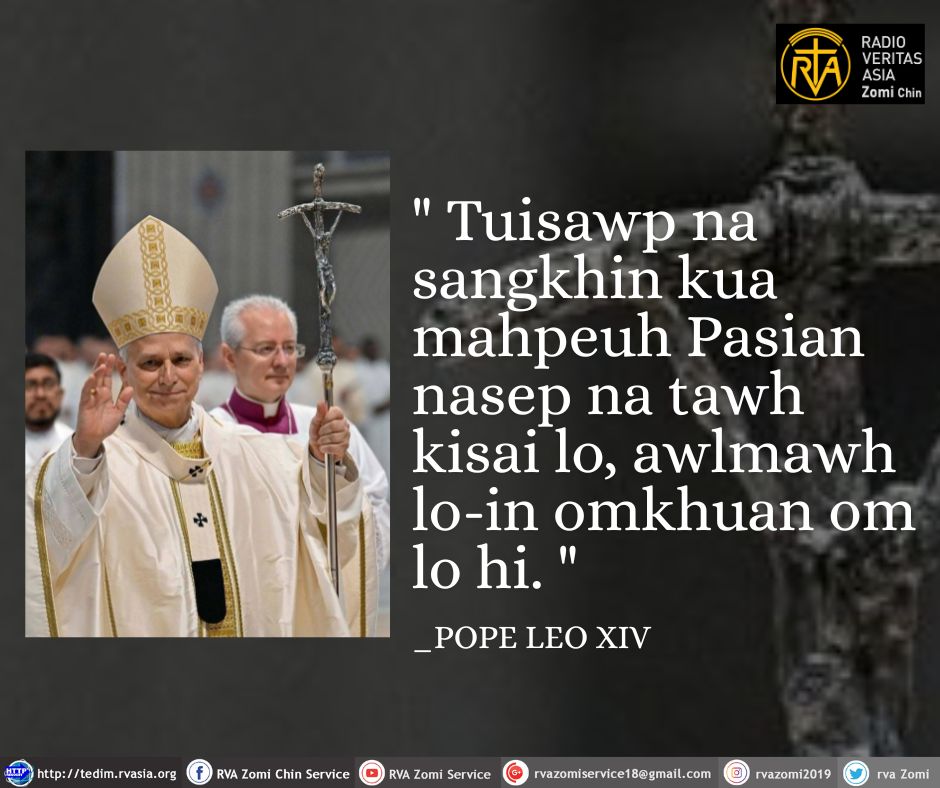 POPE LEO XIV KammalFr.Joseph MungFebruary 12, 2026Nisim Kha-an ******** ” Tuisawp na sangkhin kua mahpeuh Pasian nasep na tawh kisai lo, awlmawh lo-in omkhuan om lo hi. “ Tags# #KalayDiocese# #PopeKammal# #RVA# #RVATedimChinService# #RVAZomiChinService Fr.Joseph Mung Articles: 1675 Previous Post POPE LEO XIV Kammal********” Next Post Hun Nautang Nipi (5) Na (12.2.2026)