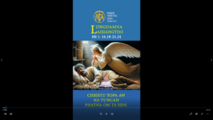 Ngeina leh tangthu sungah Misiangtho Joseph in Maria ateenpih nuam tangval tampi te lak pan teelna angah hi ci hi. Bang hang hiam cih leh aciangkhut tung pan Lily paak te apaak hang hi ci hi. Maria in Joseph tawh zuthawl akipiak kum mahin naupaai hi. Joseph pen midik khat hi a, tua thu a theih ciangin a lawmnu maizumsak nuam lo ahih manin, maaksim ding a sawm hi. Ahi zongin tua banga a ngaihsut laitakin Topa’ vantungmi khat amang sungah hong kilangha, “David’ tapa Joseph aw, Maria na zi dingin na lak ding lunghimawh kei in. Banghang hiam cih leh ama’ naupaaina pen Kha Siangtho’ gaisak ahi hi” a ci hi. Joseph a khanlawh ciangin Topa’ vantung mi’ thupiak bangin a zi dingin Maria a la hi.