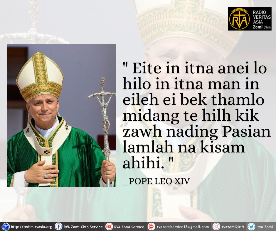 POPE LEO XIV Kammal********” Eite in itna anei lo hilo in itna man in eileh ei bek thamlo midang te hilh kik zawh nading Pasian lamlah na kisam ahihi. “