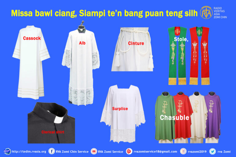 Dot na: Father aw, no biakpiakna Missa (Mass) na bawl ciangun bang puan teng silh na hi uh hiam? Dawng na: Akhat na in Cassock aki ci, Siampi te silh puan tual or Siampi puan, kisilh masa hi.Latin kam in,…