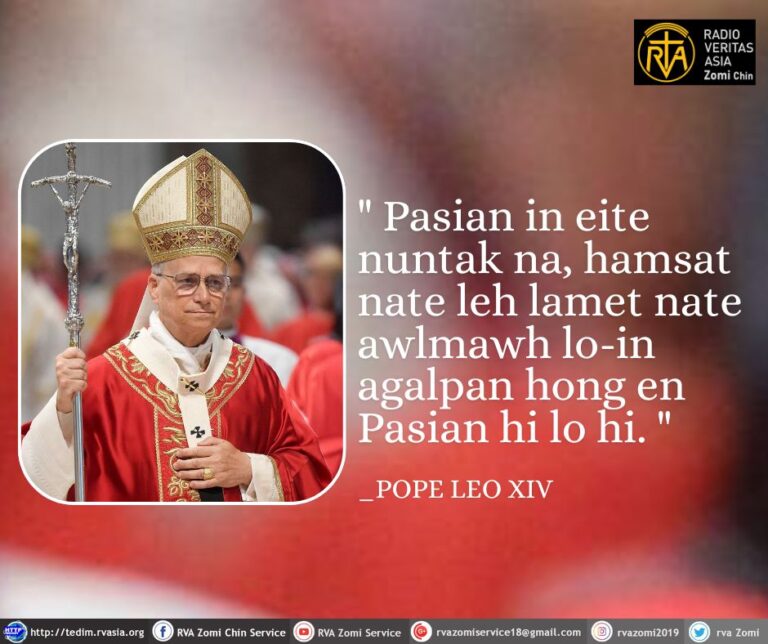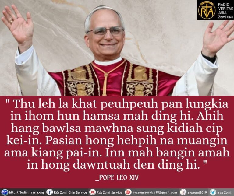 POPE LEO XIV Kammal ” Pasian in buaina khempeuh aading aphi hongpia lo hi. Ahi zongin buaina khempeuh ah eite tawh omkhawm in hong panpih tawntung hi. “